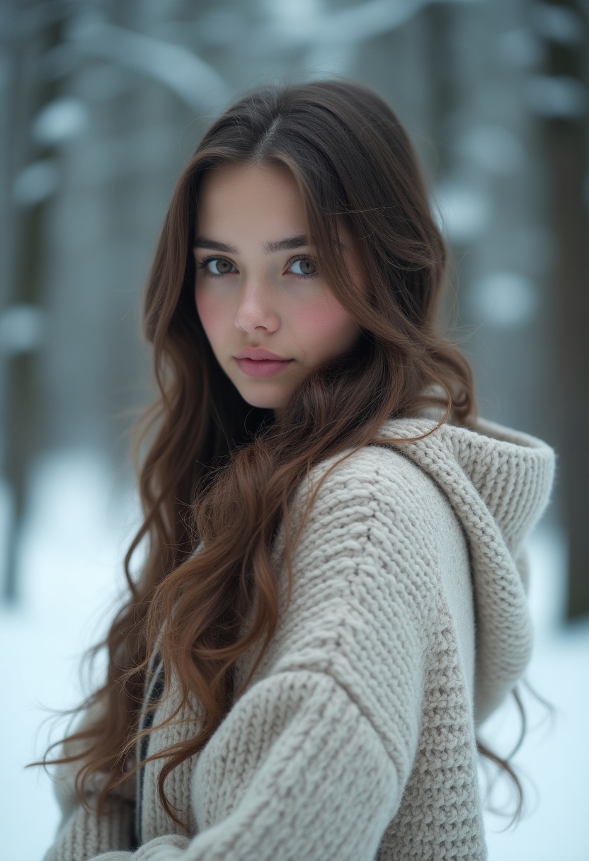 Она на фоне снежной поляны