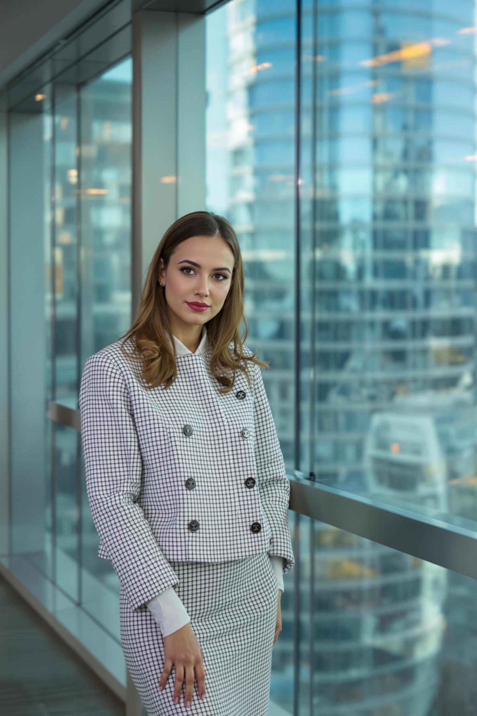 Современный деловой образ у панорамных окон мегаполиса