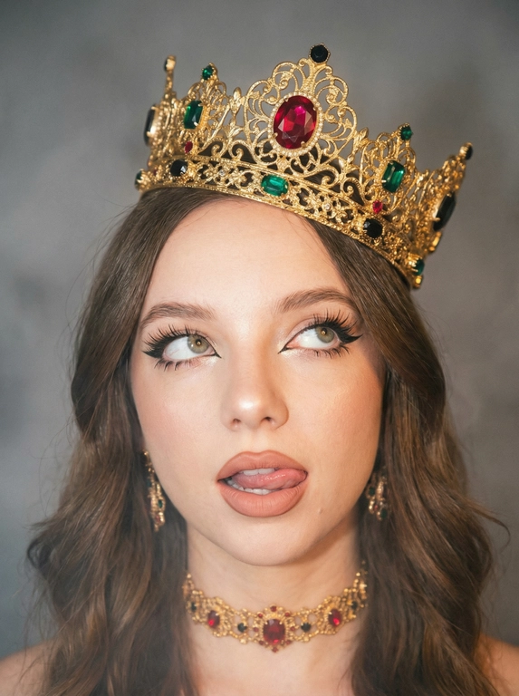 Создайте портрет в стиле rebellious royalty: дерзкая королева-бунтарка с винтажной короной.